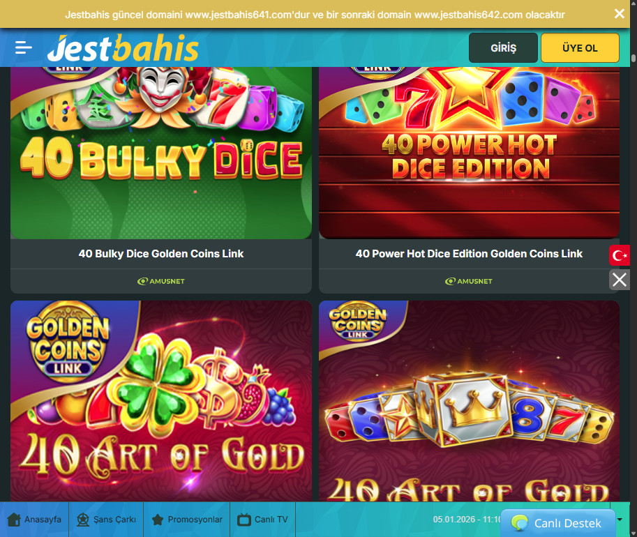 Online şans oyunları dünyasında slot makineleri, hem eğlenceli yapısıyla hem de büyük kazanç potansiyeliyle oyuncuların en çok tercih ettiği kategorilerden biridir. Türkiye’de slot oyunları denildiğinde akla gelen güvenilir ve zengin içerikli platformlardan biri olan jestbahis, yüzlerce farklı slot oyunuyla kullanıcılarına benzersiz bir deneyim sunar.